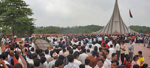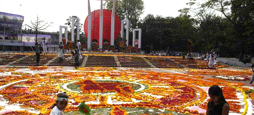 21 February is observed throughout the country to pay respect and homage to the sacred souls of the martyrs' of Language Movement of 1952. Blood was shed on this day at the Central Shahid Minar (near Dhaka Medical College Hospital) area to establish Bangla as a state language of the then Pakistan. All subsequent movements including struggle for independence owe their origin to the historic language movement. The Shahid Minar (martyrs monument) is the symbol of sacrifice for Bangla, the mother tongue. The day is closed holiday. Mourning procedure begin in Dhaka at midnight with the song Amar vaier raktay rangano ekushay February (21st February, the day stained with my brothers' blood). Nationals pay homage to the martyrs by placing flora wreaths at the Shahid Minar. Very recently the day has been declared World Mother Language Day by UNESCO.
