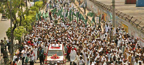 Muharram procession is a ceremonial mournful procession of Muslim community. A large procession is brought out from the Hussaini Dalan Imambara on 10th Muharram in memory of the tragic martyrdom of Imam Hussain (RA) on this day at Karbala in Iraq. Same observations are made elsewhere in the country